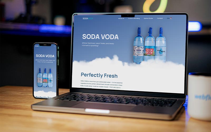 Sodavoda.com je web prezentacija brenda SODA VODA — premium gazirane vode koja se ističe osvežavajućim ukusom, finim mehurićima i neutralnim karakterom. Na sajtu se predstavlja koncept proizvoda, objašnjavaju se benefiti i fizika gaziranog napitka, pokazuju se načini korišćenja (npr. serviranje u koktelima i špricerima) i nudi mogućnost personalizovanog brendiranja proizvoda prema vizuelnom identitetu klijenta. Posetiocima se omogućava da saznaju više o proizvodu i da stupe u kontakt sa proizvođačem.